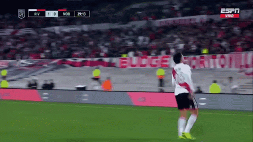 Pablo Solari celebrates scoring a goal for River Plate against Newell's Old Boys in the LPF.