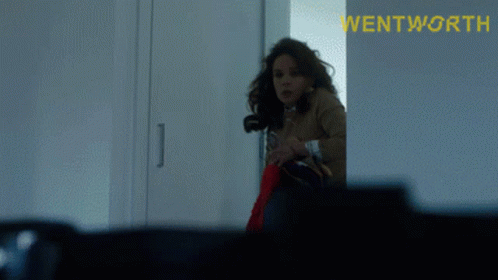 Sonia Stevens frantically packs her clothes, preparing for a trip or escape, in a scene from Wentworth.