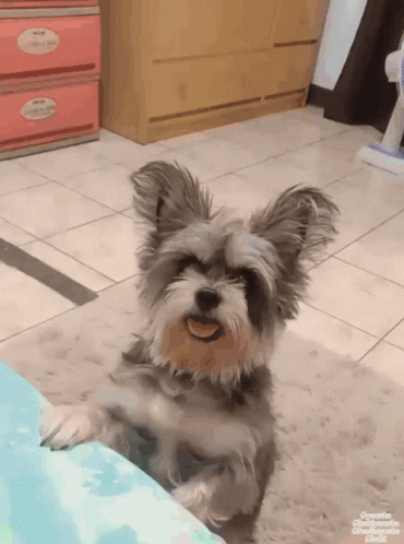 Kuki, a small fluffy dog, stands on its hind legs, looking adorable and acting cute.