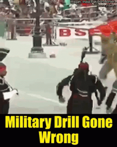 Military drill goes wrong at the Wagah India-Pakistan border ceremony.
