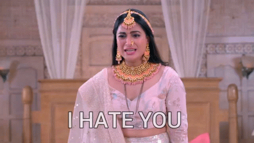 Pakhi Didi, dressed in traditional Indian attire, expresses 'I HATE YOU' in a dramatic scene from Ghkkpm.