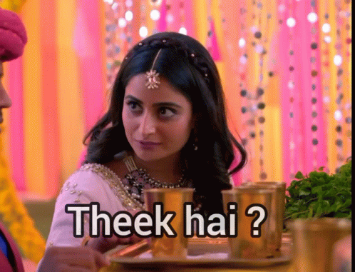Pakhi Didi (Aishwarya Sharma) from Ghum Hai Kisikey Pyaar Meiin asks "Theek hai?" while holding a tray of cups.