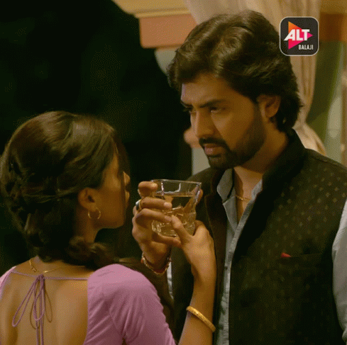 Aakash Sahay holds a glass of whiskey, sharing an intense moment with a woman from Alt Balaji's Bichoo Ka Khel.