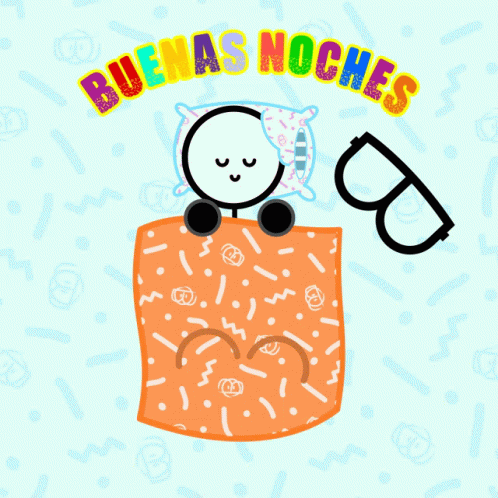 Palito Palitoart character sleeping soundly under a blanket, with 'Buenas Noches' (Good Night) text above.