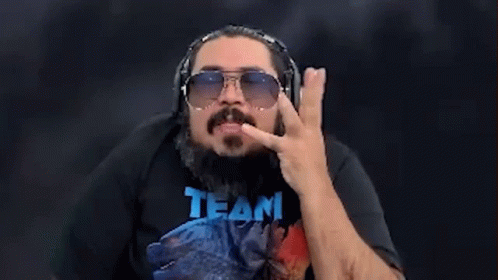 Agbin3r does a facepalm, then looks at the camera wearing sunglasses and a "TEAM" shirt.