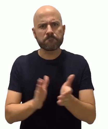 Vabo, a man with a beard, claps his hands with a serious expression, showing pride.