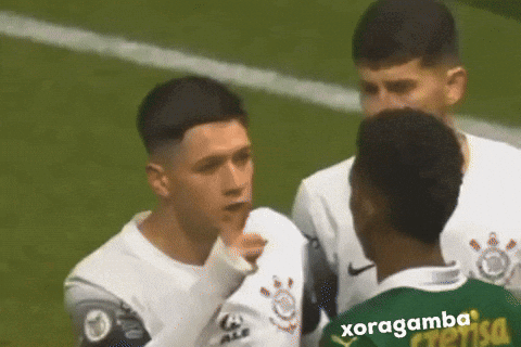 Veiga from Palmeiras pushes Garro from Corinthians during a 2-0 match, a tense moment on the field.