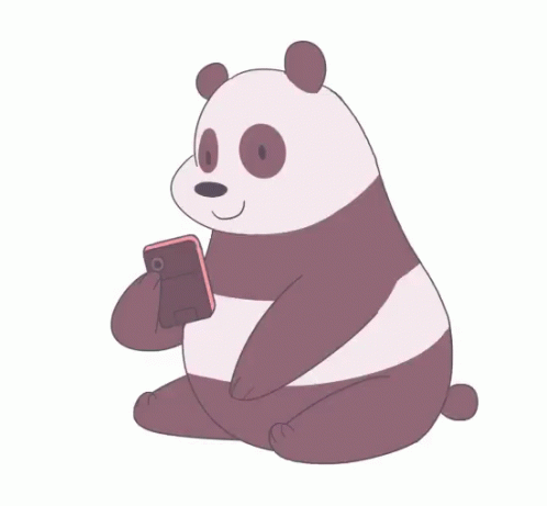 A cartoon panda from We Bare Bears reacts with joy to receiving 10 likes on its cell phone.