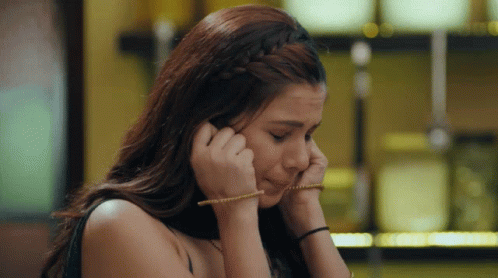 Raavi (Alice Kaushik) from Pandyastore in distress, covering her ears, possibly crying.