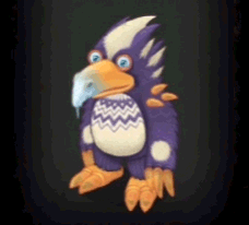 An animated Pango-rare character from My Singing Monsters, a purple and white bird with a blue beak.