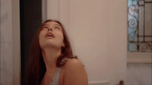 Juma from Pantanal looks up with an intense expression, possibly reacting to something above her.