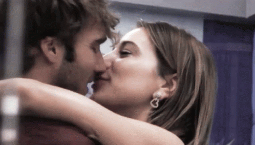 Paolo Ciavarro and Clizia Incorvaia share a passionate kiss and embrace, showing their affection.