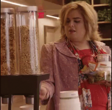 Paquita Salas enthusiastically takes advantage of free food, exclaiming 'It's all free!'