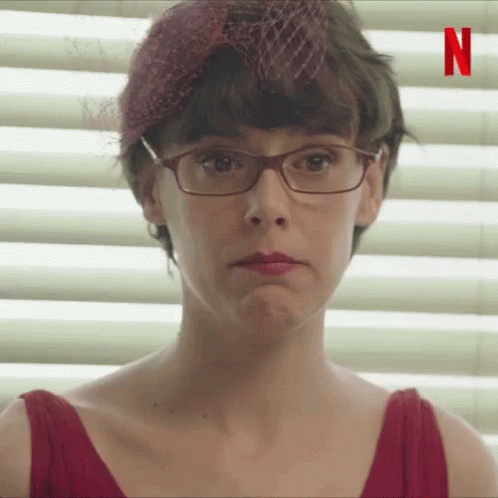 Paquita Salas, wearing glasses and a red top, makes a funny face in a scene from the Netflix series.