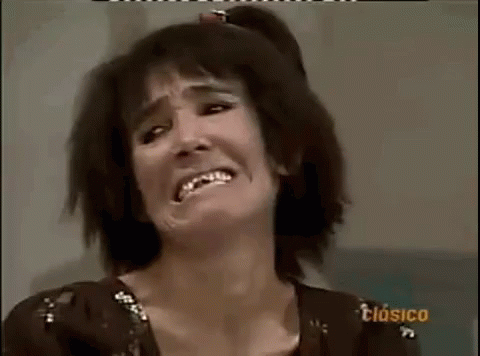 Chimoltrufia crying and making a funny face while saying 'Para qué te digo que no, si sí.'