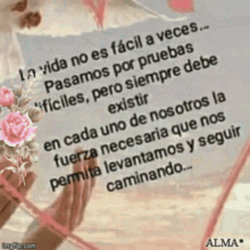 A motivational quote in Spanish about life's difficulties and finding the strength to keep going.