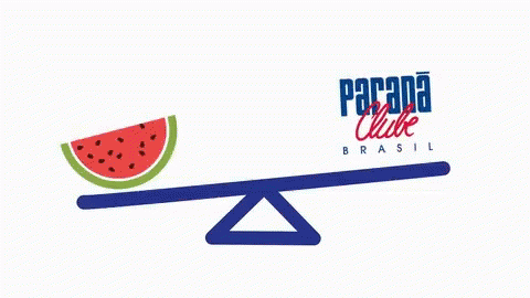 A slice of watermelon balances on a seesaw next to the Parana Clube Brasil logo.