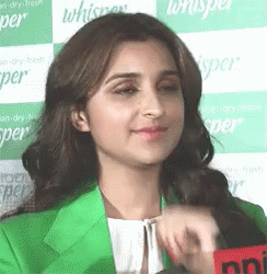 Parineeti Chopra covers her face in a moment of shyness or embarrassment during an event.