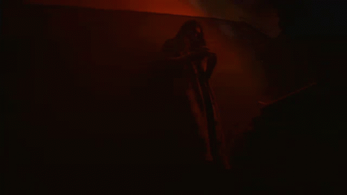 Paris Shadows smoking a cigarette in a dimly lit, red room, showcasing rings and a nose piercing.