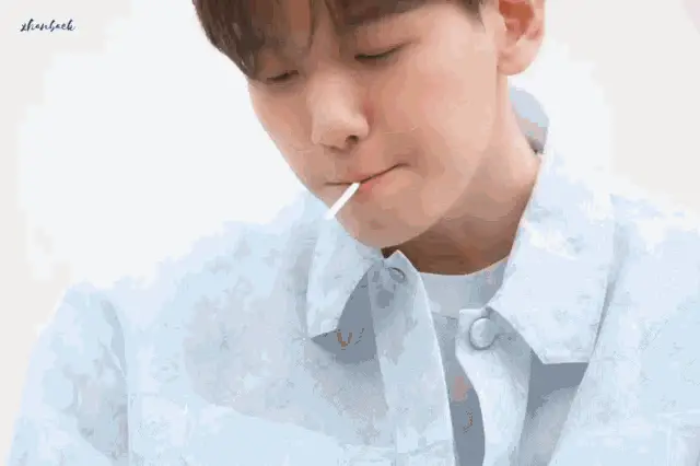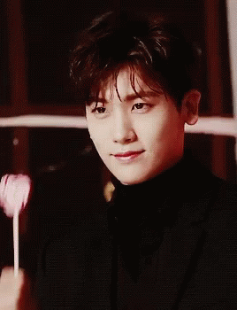 Park Hyung Sik, dressed in a black suit, holds a heart-shaped lollipop with a charming smile.