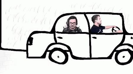 Thevr and Tolat are seen inside a cartoon car, with one driving and the other as a passenger.
