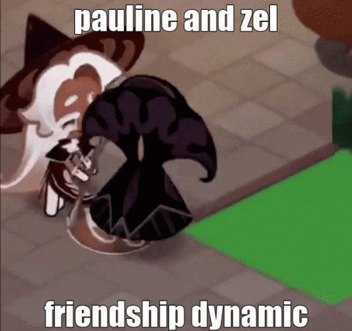 Pauline and Zel's unique friendship dynamic, featuring Cookie Run characters Espresso Cookie and a dark figure.