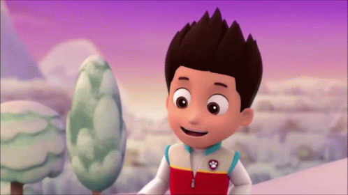 Ryder and the Paw Patrol pups, Rubble, Chase, and Skye, celebrate Christmas by unwrapping colorful gifts in a snowy landscape.