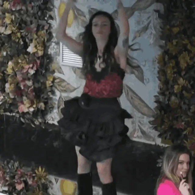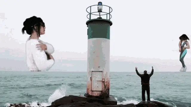 Enzo Miccio gestures dramatically with a red scarf on Pechino Express, standing by water with a woman.