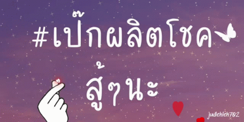A supportive message for Peck Palitchoke, featuring a finger heart and floating red hearts, encouraging him to keep fighting.