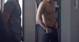 A man confidently shows off his muscular physique in front of a mirror, feeling good about his body.
