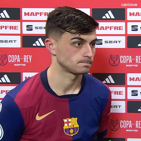 Pedri Gonzalez, the FC Barcelona midfielder, stands in his team's jersey in front of a Copa del Rey backdrop.
