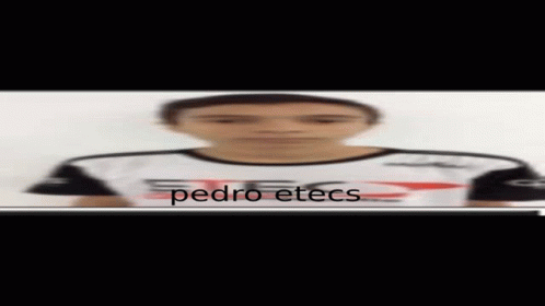 Pedro Etecs in a blurry portrait, wearing a white and black shirt with 'ETEC' text.