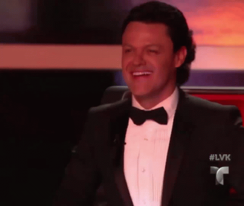 Pedro Fernández, also known as Pedrito Fernández, smiles and claps while wearing a tuxedo and bow tie.