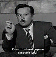 Pedro Infante makes a funny face while smoking a cigarette, humorously blaming a woman.