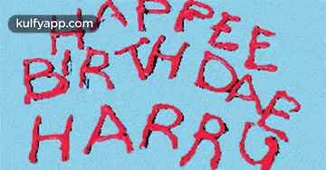 A blue background with bold red letters spelling out 'Happy Birthday Harry'.
