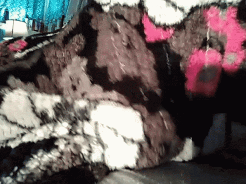 A child plays peekaboo, revealing a smiling face from under a cozy black, white, and pink blanket.