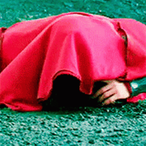 Chris Hemsworth as Thor plays peekaboo, emerging from under a red cape with a big, happy smile.