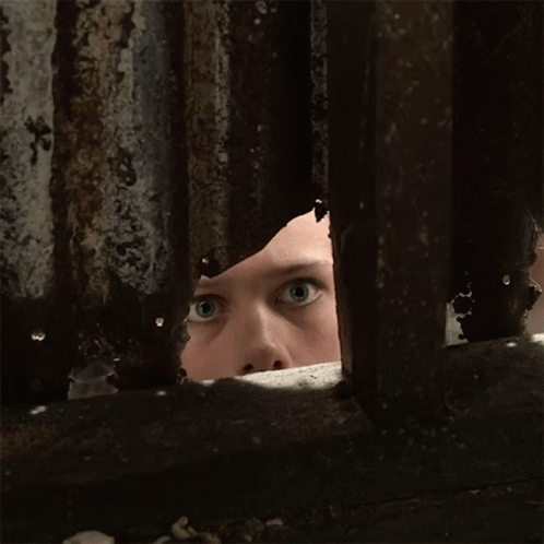 Young Elvis, portrayed by Chaydon Jay, peeks through a rusty hole with wide, curious eyes.