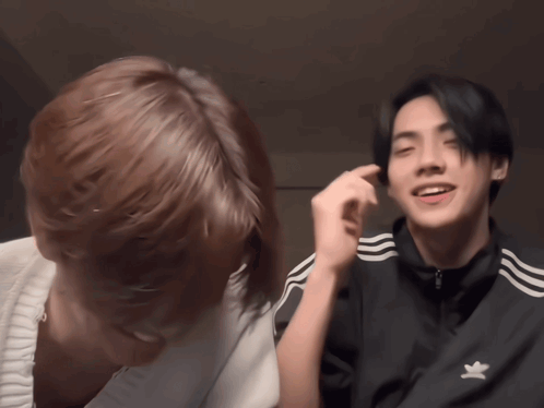 Peemwasu and Copper share a joyful laugh, with Copper wearing a black Adidas jacket.
