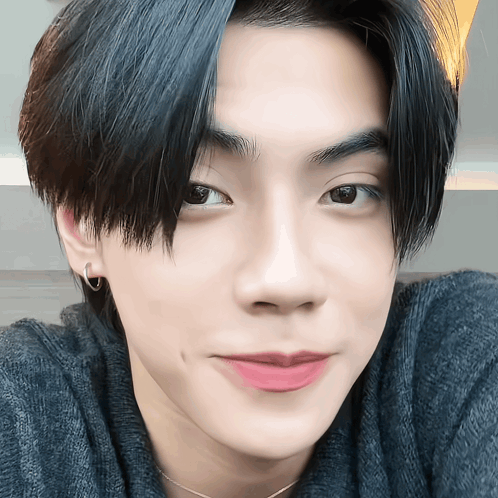 Peemwasu ภีมวสุ looks directly at the camera with a gentle smile, showcasing his dark hair and earring.