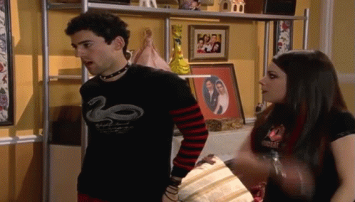 Alejandra Lopez, Danny Perea, and Luis Gerardo Mendez in a scene from Vecinos, where a man in a snake shirt argues with a woman.