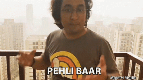 Comedian Appurv Gupta on a balcony, expressing "Pehli Baar" (First Time) with wide gestures.