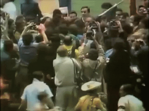 Pele and the Brazil team celebrate their World Champion title at Mexico '70, surrounded by a jubilant crowd.