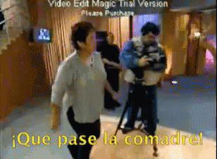 Chaotic live fight erupts on a TV show set, with the dramatic call '¡Que pase la comadre!', reminiscent of Senorita Laura's program.