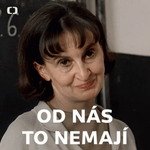 A woman from the Czech film Pelisky smiles, with the text 'They don't have it from us' displayed.