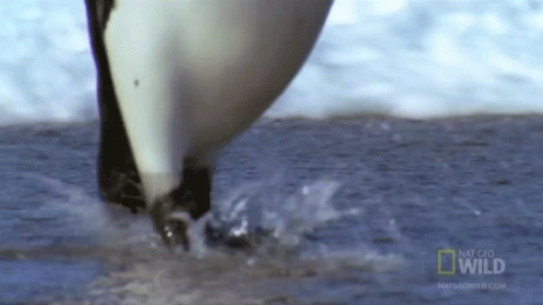 A close-up view of an Emperor Penguin's foot as it waddles through shallow water, celebrating World Penguin Day.