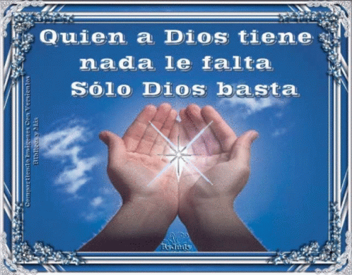 A profound Christian thought: 'Whoever has God lacks nothing. Only God suffices,' displayed on hands holding a rosary.