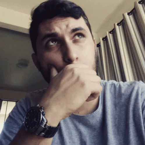 Marcelo deep in thought, looking up with a pensive expression, hand on chin, wearing a watch.