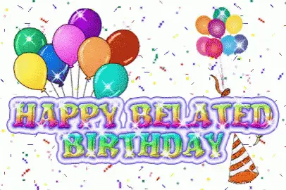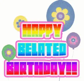 Peow4's happy birthday greeting card, featuring vibrant pink and purple colors.