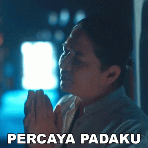 A man praying with the words "Percaya Padaku" (Trust Me) displayed, associated with Ungu's song.